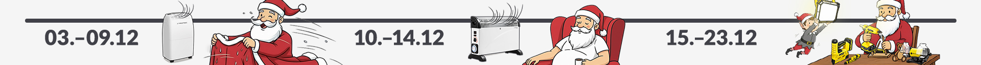 Freuen Sie sich auf drei aufeinanderfolgende Aktionsphasen, in denen wir ausgewählte Produkte zu besonders attraktiven Festpreisen anbieten. Vom optimalen Raumklima über behagliche Wärme bis hin zu den starken Geräten aus Santa’s Werkstatt – jeder Aktionszeitraum enthüllt neue, starke Vorteile für die Winterzeit.