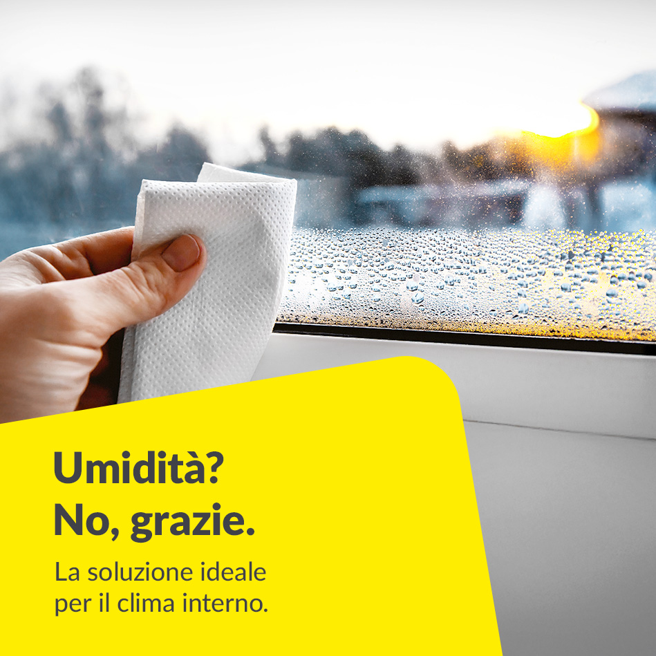 - Particolarmente indicato per: bagni, cucine, camere da letto e scantinati, ovvero tutti gli ambienti in cui l'umidità tende ad accumularsi rapidamente.