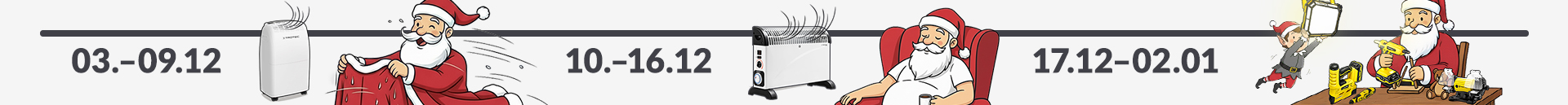 Vi invitiamo a partecipare a tre fasi promozionali consecutive durante le quali offriremo prodotti selezionati con sconti fissi particolarmente interessanti. Dal clima interno ideale e dal calore accogliente agli elettrodomestici efficienti provenienti dal laboratorio di Babbo Natale: ogni periodo promozionale offre nuovi e vantaggiosi benefici per la stagione invernale e idee regalo perfette.
