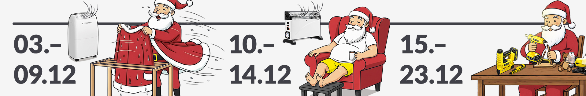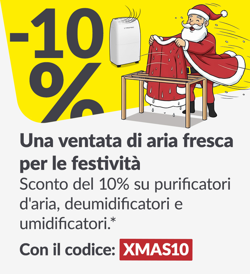 L'atmosfera è carica di aspettative, poiché presso TROTEC il periodo natalizio rappresenta il momento più accogliente dell'anno. Per settimane di festeggiamenti che si protrarranno fino al nuovo anno, abbiamo selezionato i migliori accessori per la vostra casa da posizionare sotto l'albero di Natale. Poiché Babbo Natale non apprezza solo i biscotti, ma anche la tecnologia funzionale di TROTEC.